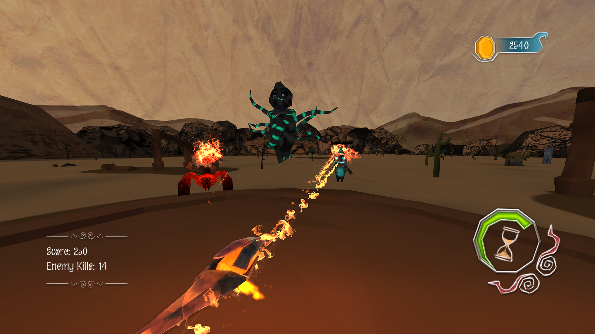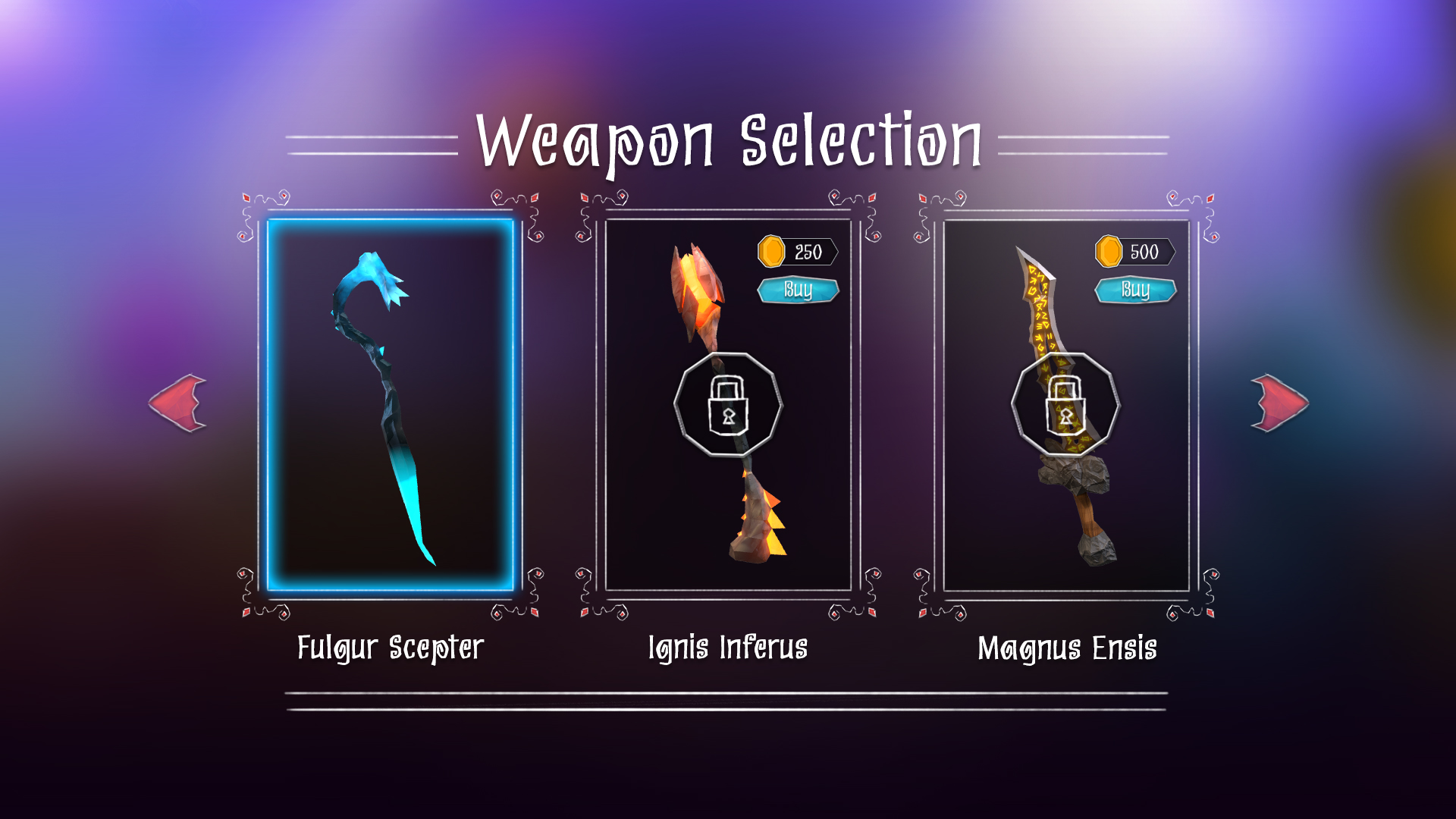 The font used throughout the game is Eskargot. Initially, I wasn’t sure it would work—but after testing multiple options, Eskargot stood out with its unique character. Its angular curves and folded letterforms subtly echoed the game's low-poly style while also adding a magical, otherworldly tone. It later became the primary typeface for both in-game UI and the main logo.