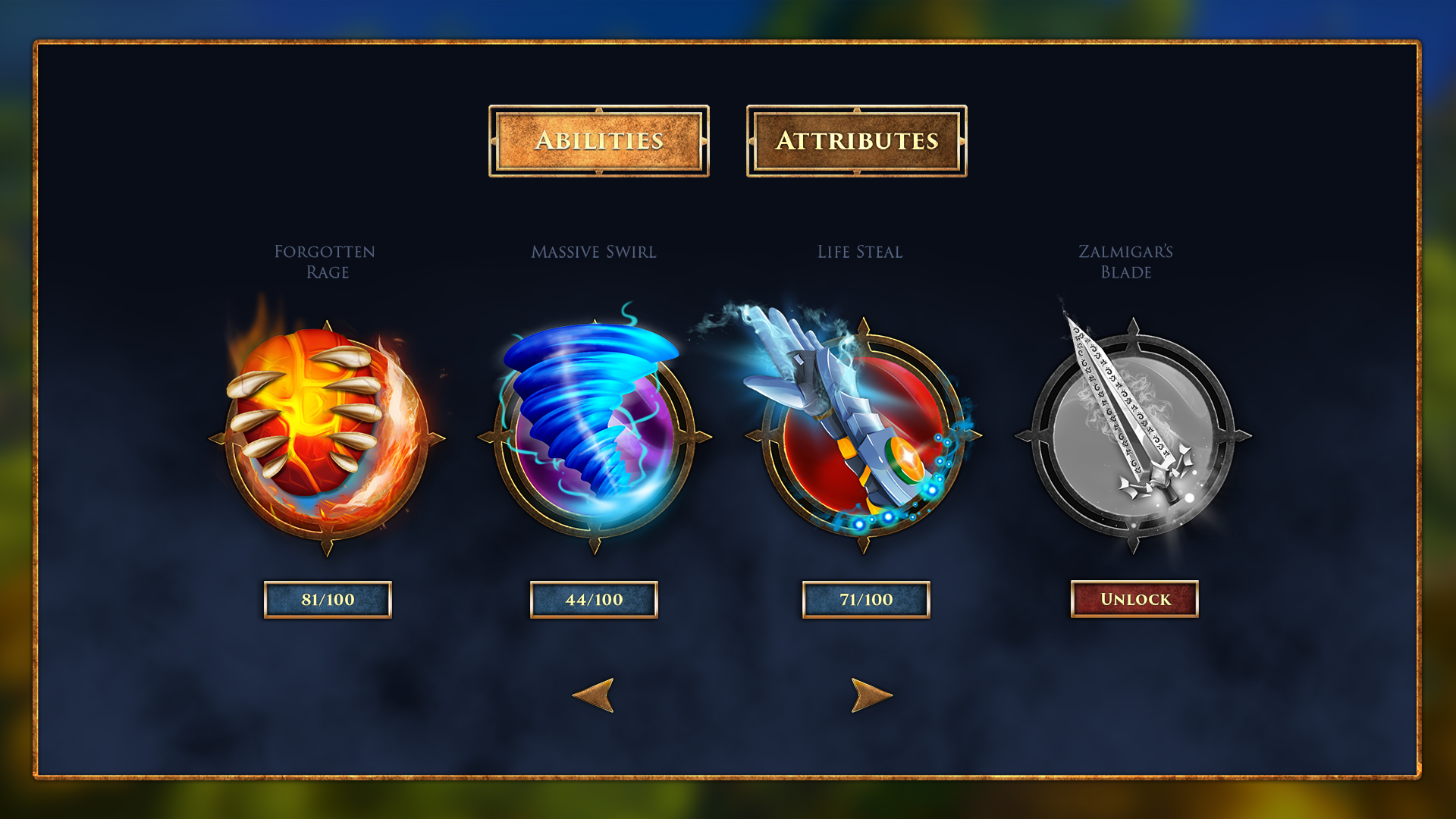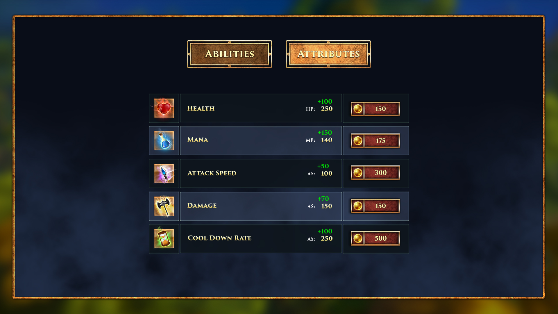 The visuals below represent a series of static mockups I created to establish the UI language of the game. These include early layouts, ability panels, and iconography. My aim was to balance usability with rich fantasy detail, introducing a look that would grow with the game’s mechanics.