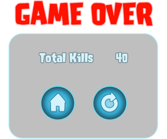 The static UI mockups below represent the interface I designed and illustrated for Mojo Shooter. Since AR overlays digital visuals on a real-world backdrop, I focused on semi-transparent elements, flat highlights, and bold shapes to ensure usability without visual clutter.
