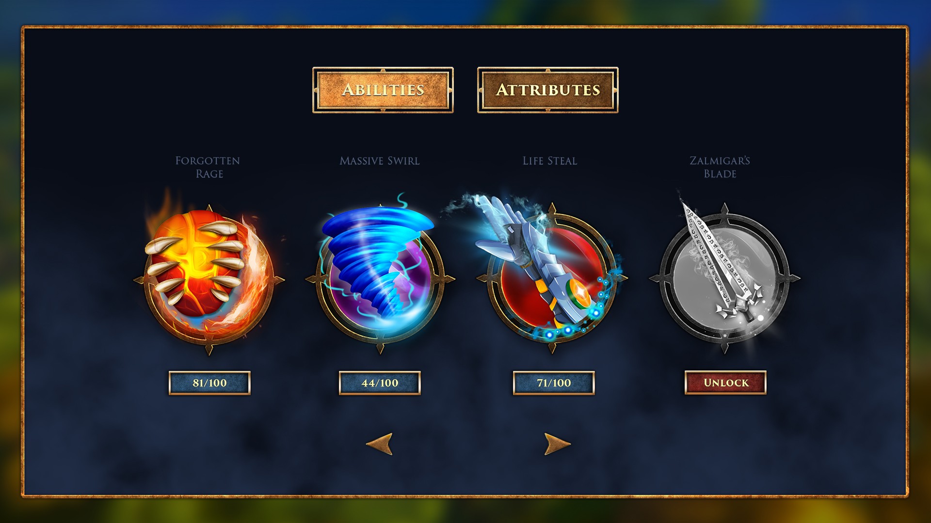 – Character abilities upgrade screen –